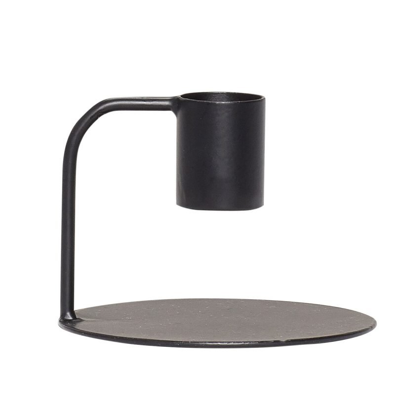 This black candlestick is made in powder coated iron. The sleek, elegant shape creates a modern look. The dark black color compliments all candles you place in the candlestick, whether it is a white or purple candle.